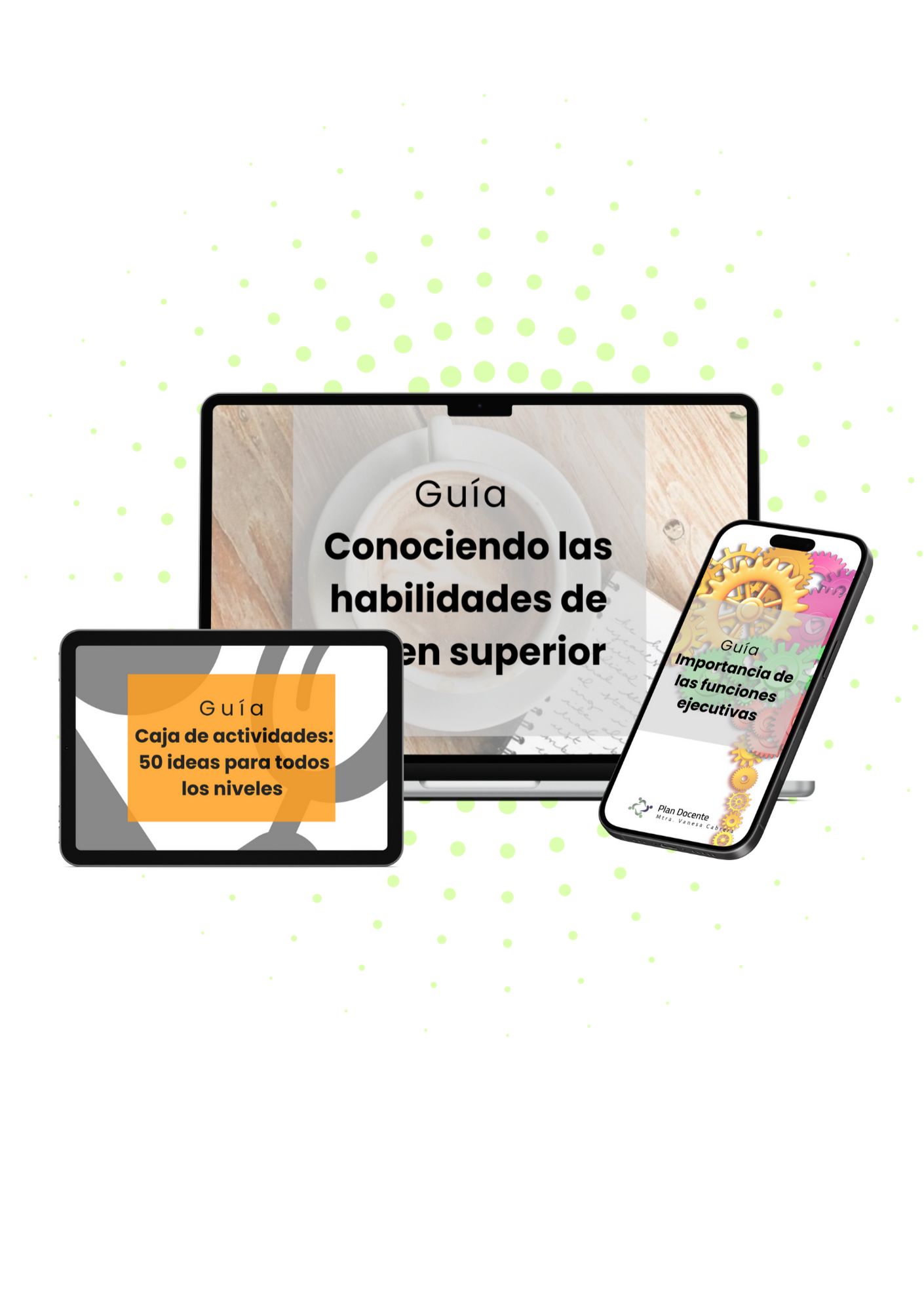 ✅ Guía - Importancia de las funciones ejecutivas✅ Guía - Conociendo las habilidades de orden superior✅ Caja de Actividades: 50 ideas para todos los niveles✅ Planilla Planificación Diaria y SecuenciaBONUS 🎁 Guía - Descripciones Fundadas